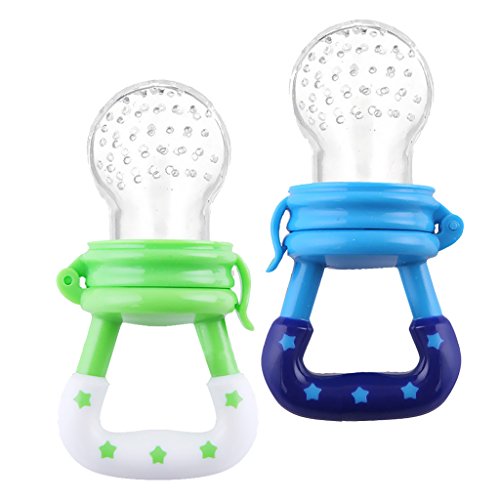 - 赤ちゃんは、食べ物を楽しむためにシリコンストレーナーネットを吸うためのハンドルを保持します。