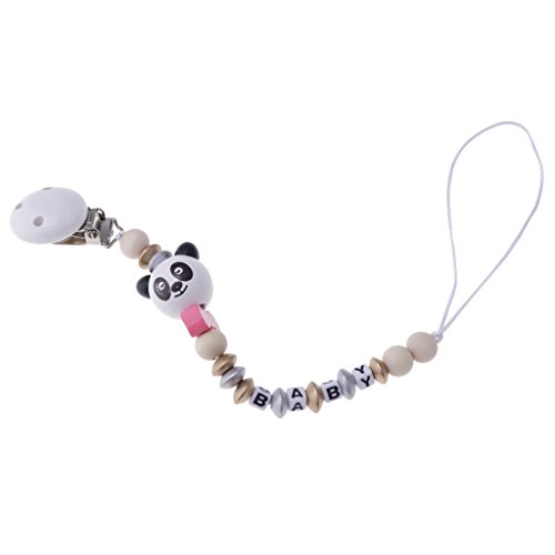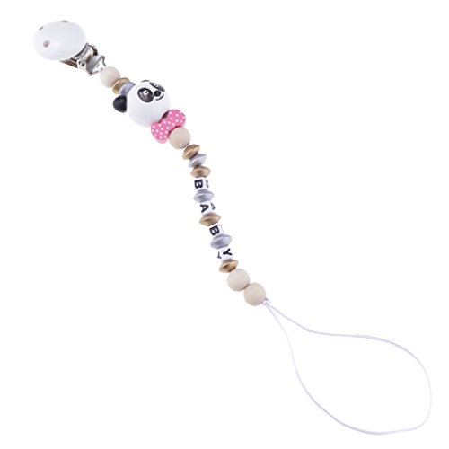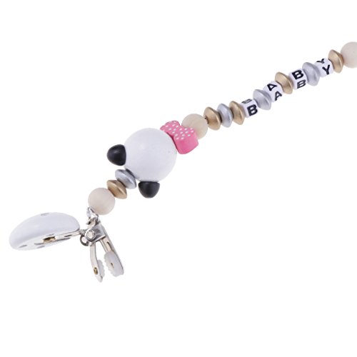 Perfk 赤ちゃん おしゃぶりホルダー おしゃぶりクリップ 木製 漫画 おしゃぶり チェーン ビーズ付き 全2色 - ピンク, 20cm