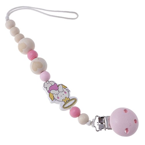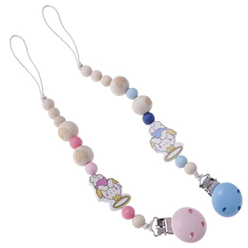 Perfk 赤ちゃん ベビー 木製 可愛い 漫画 おしゃぶりチェーン おしゃぶりホルダー 2個セット