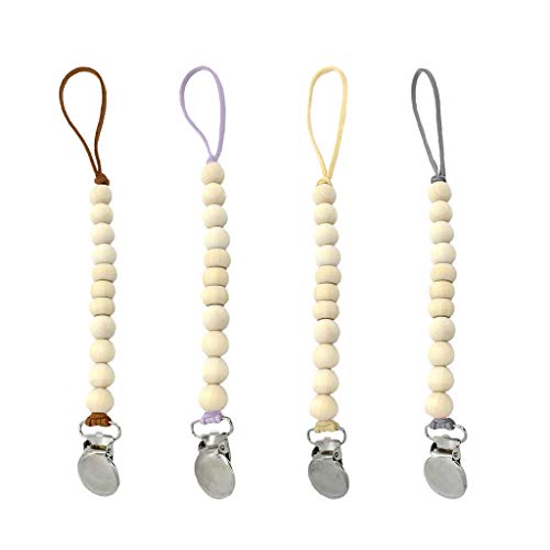 Perfk ベビー おしゃぶり 歯がため 木製 おしゃぶりホルダー おしゃぶりチェーン 全2スタイル - スタイル2