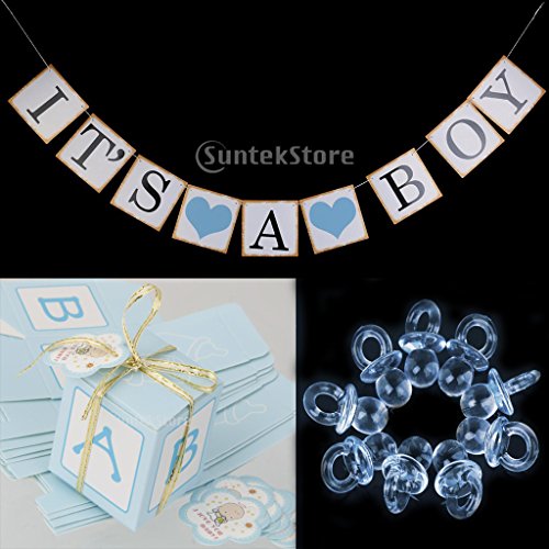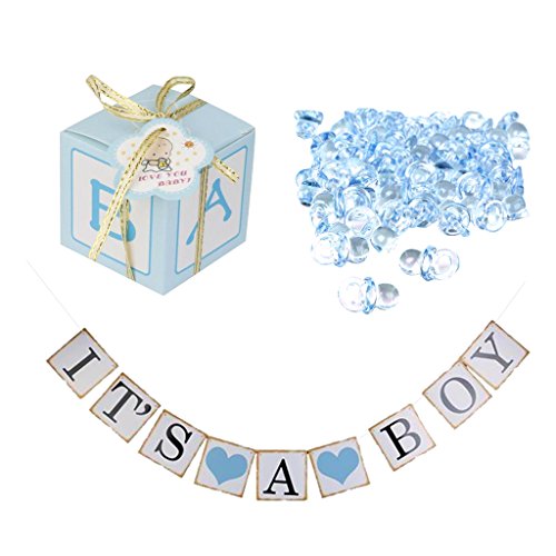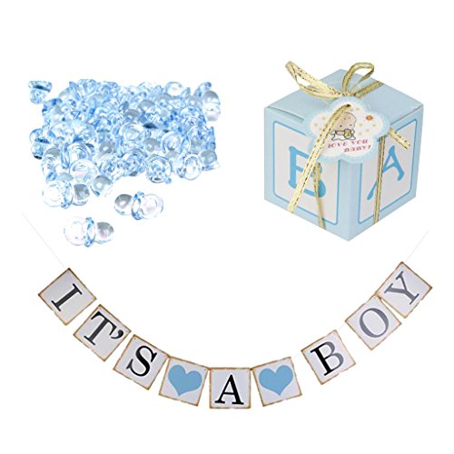 - かわいいデザインの赤ちゃんの紙箱。あなたのベビーシャワーを飾るために手にこれらのミニおしゃぶりを持っている。テーブルの上に散らばっていても、ギフトのためのフィラーとして使われても、これらのミニは常に大ヒットです。美しい手作りのIT'S BOYのバナー、写真の小道具としても完璧な
