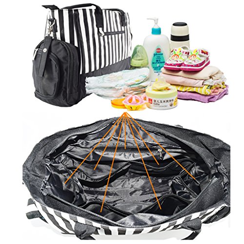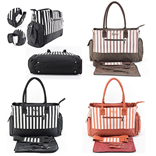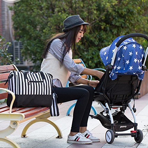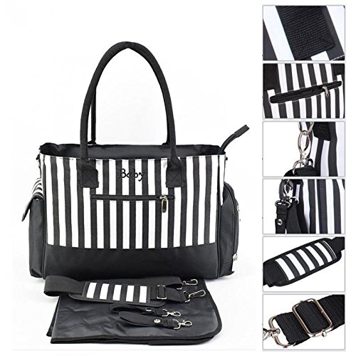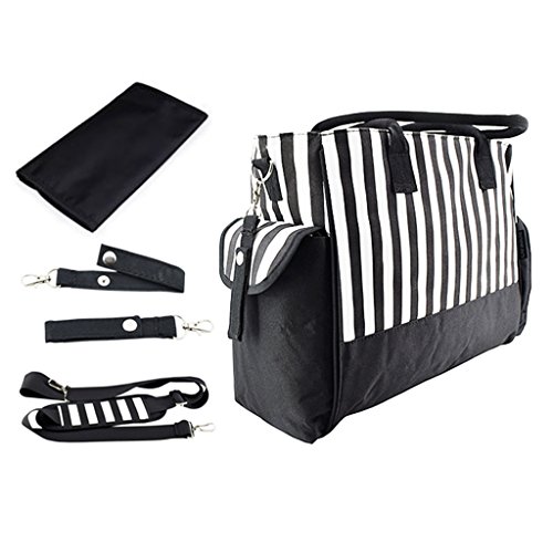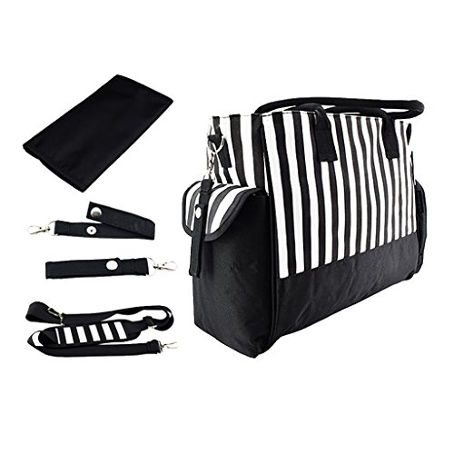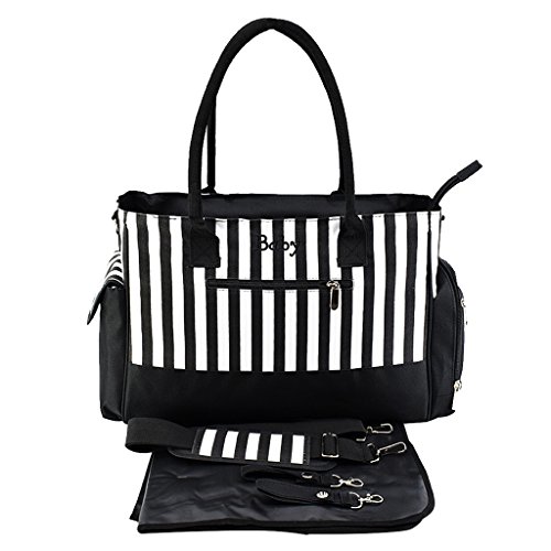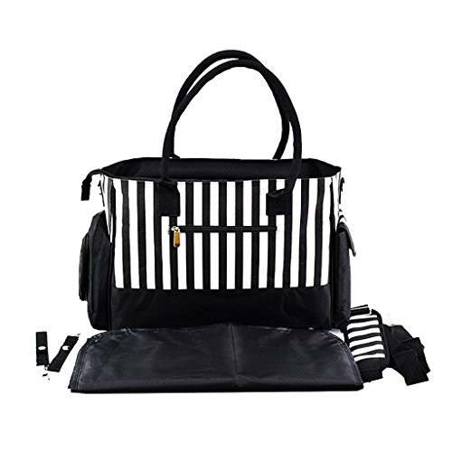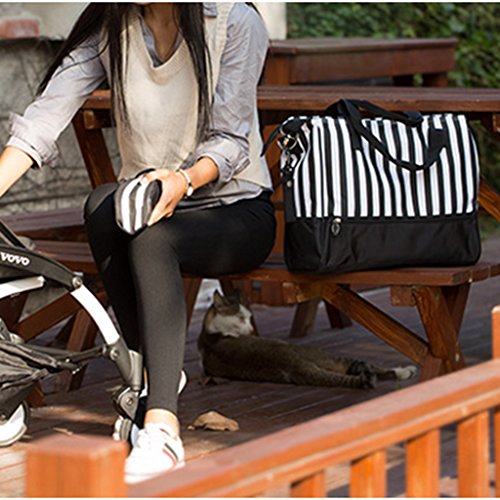 Perfk 全3色 ママバッグ 人気 ショルダーバッグ 軽量 収納バッグ ショッピング 旅行用 - ブラックストライプ