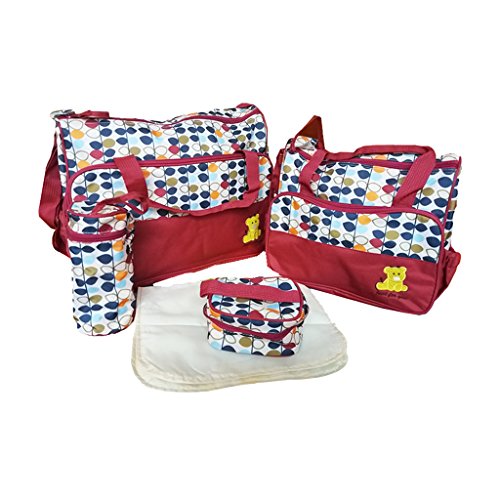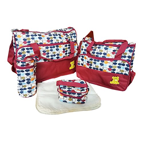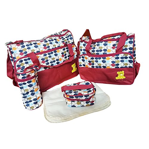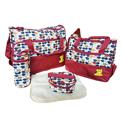 Perfk マザーズバッグセット バッグ ママバッグ マザーズバック ショルダーバッグ おむつポーチ 哺乳瓶ケース レディース 全5色 - 赤
