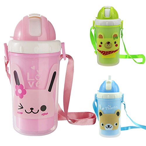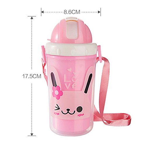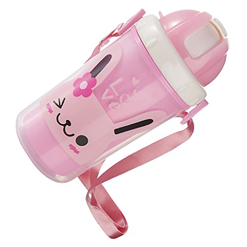 Perfk 300ml ベビー キッズ ウォーターボトル ストローカップ 水筒 携帯便利 全3色 - ピンクのうさぎ