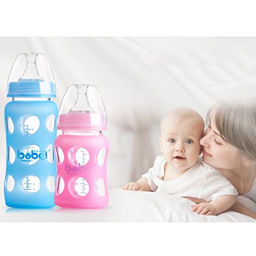Perfk ガラス 赤ちゃん 哺乳瓶のカバー ボトル シリコーンスリーブ 絶縁保護 安全 全2色 - 青