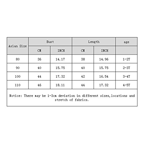 アジアサイズ100:トップス約17cm / 6.69インチ;バスト約44 / 17.32インチ;ボトムレングス約20cm / 7.87インチ;年齢3-4T ;