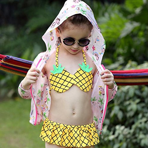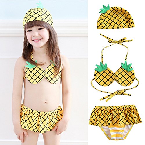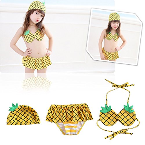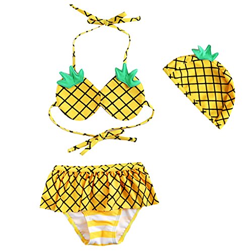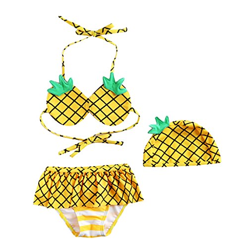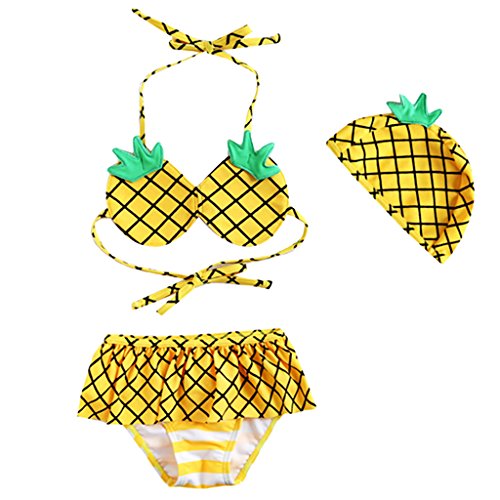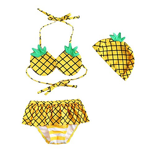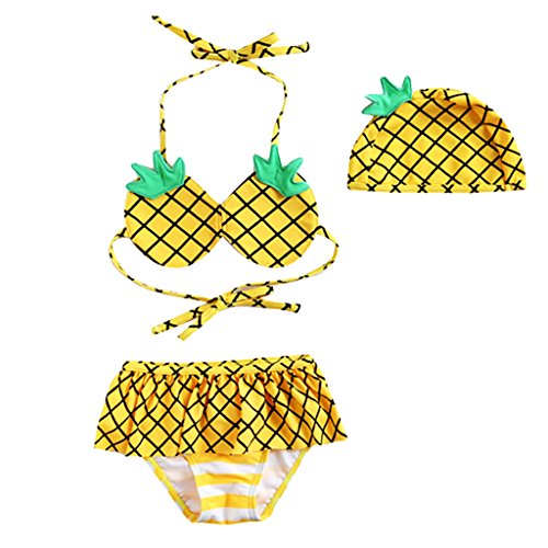Perfk ベビー水着 女の子 水着 子供 ビキニ ビーチ 旅行 夏 海水浴 3点セット パイナップル柄 全5サイズ - 3Y
