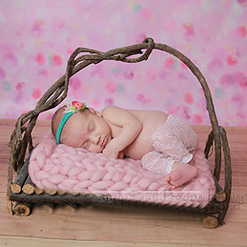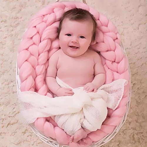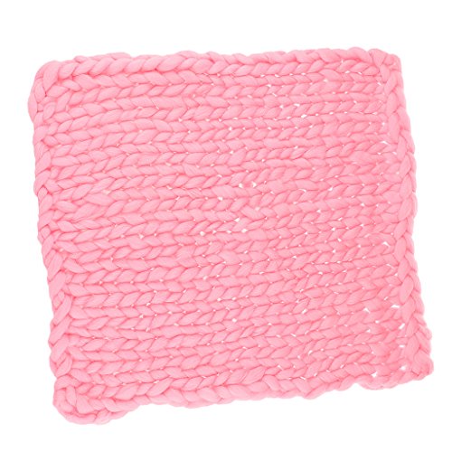 Perfk 編み毛布ブランケット ウールブレンド 子供 写真の小道具 編み紐 パーティー 新生児 赤ん坊 ギフト 全4色 - ピンク