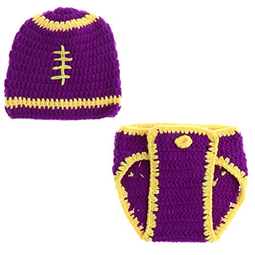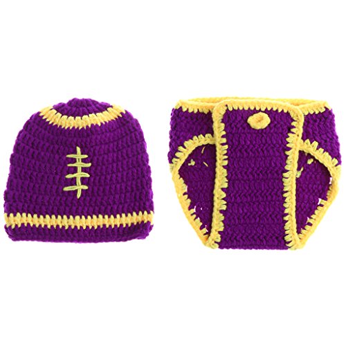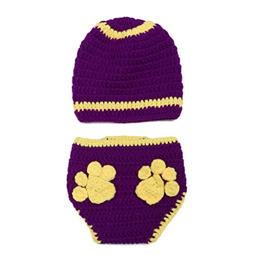 Perfk 写真の小道具 赤ちゃん帽子 新生児ニットかぎ針編みの服 ビーニー 手作り 全8様式 - パープルセット
