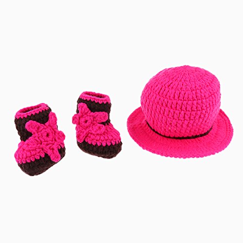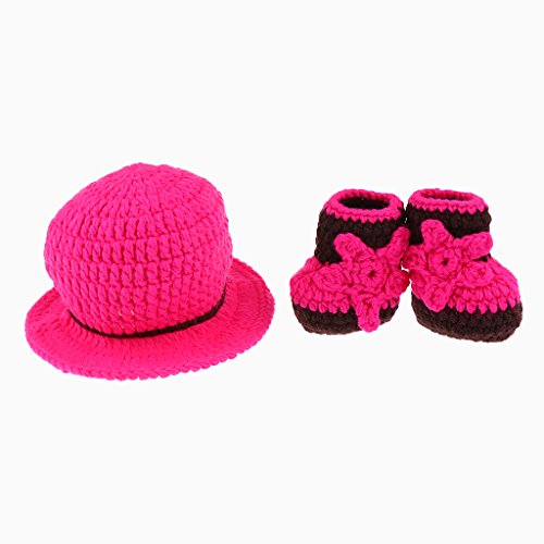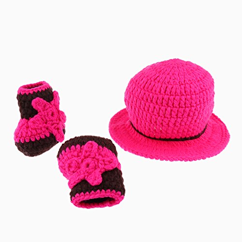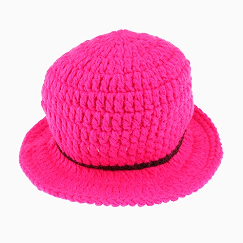 Perfk 新生児 ユニセックス ニット コスチューム 写真の小道具 帽子 全3色 - ローズレッド