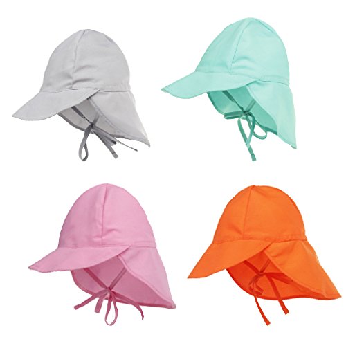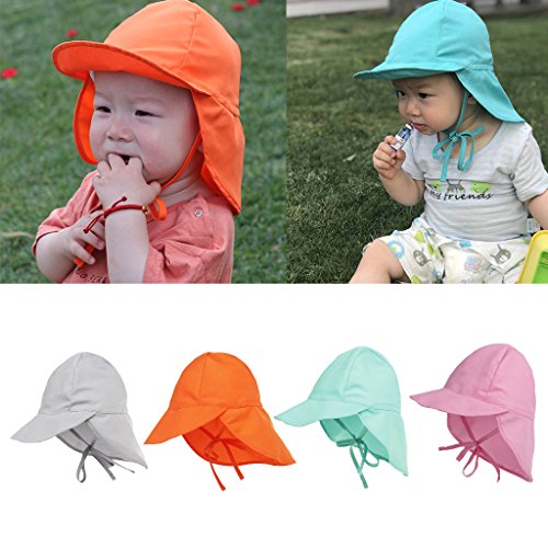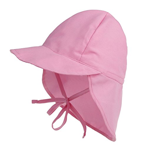 Perfk 全4色 キッズ 子供水着用 日よけ帽子 日よけキャップ 垂れ布付き帽子 スイムキャップ 水泳帽子 女の子 男の子 紫外線対策 * - ピンク, L