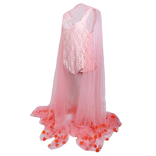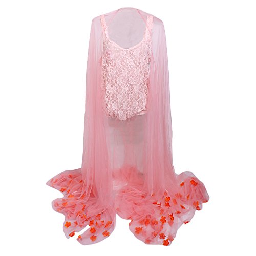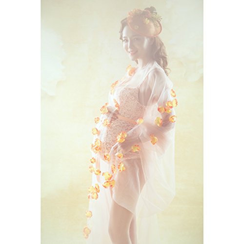 Perfk 写真用マタニティドレス マキシフォトドレス フラワー ノースリーブ ソフトレース 妊娠服 Vネック