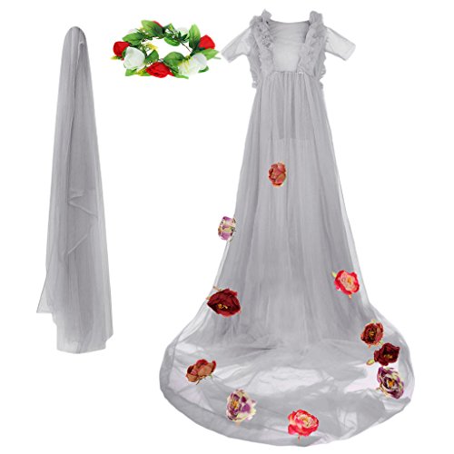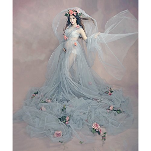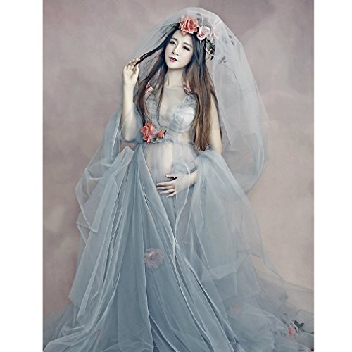 Perfk 妊婦のガウン 写真小道具 シースルーマキシドレス 妊娠中の女性 半袖 レース ソフトオーガンザ 全3色 - グレー