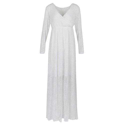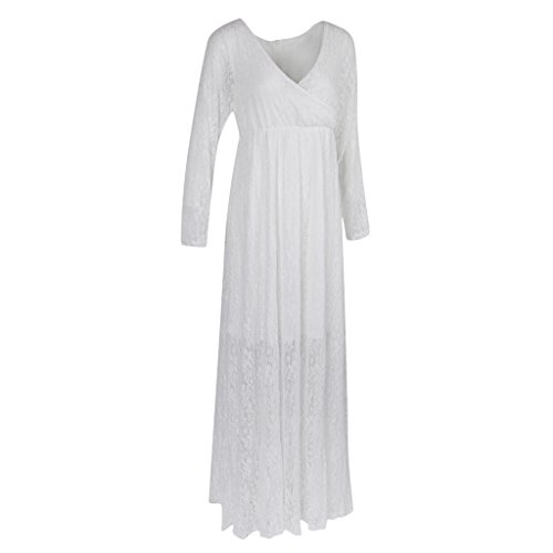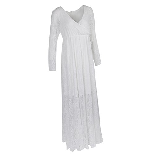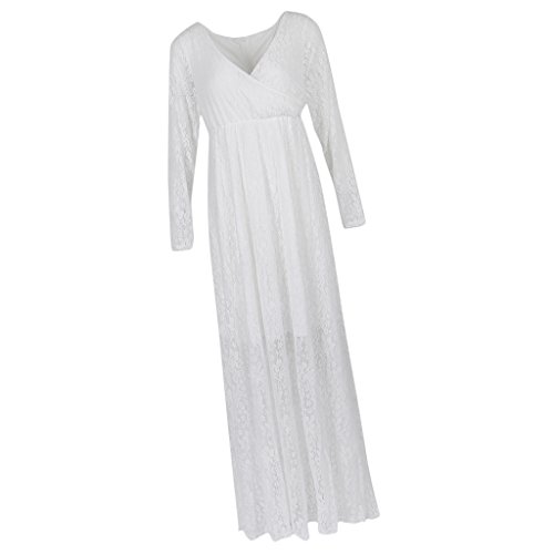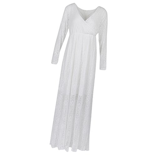Perfk 妊娠婦 マタニティ 撮影 フォト 衣装 ドレス ワンピース スカート Vネック 記念に 全2色4サイズ - 白, XXL