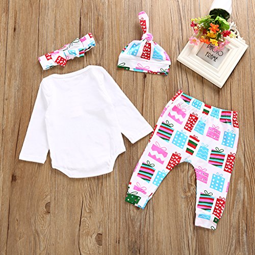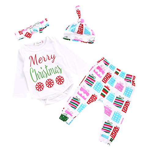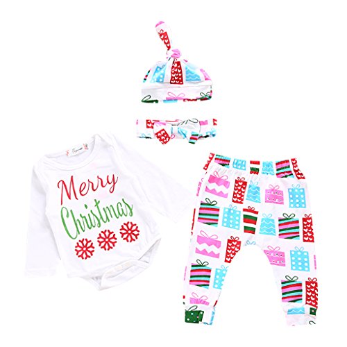 - 4pcs /セット新生児幼児の女の子メリークリスマス Tシャツのトップス+プリントパンツ+帽子のクリスマスの衣装セット。