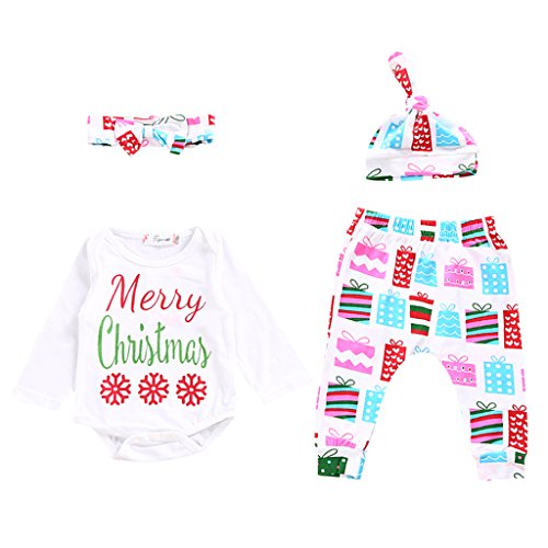 Perfk 通気性 赤ちゃん 女の子 クリスマス XMAS 4枚 衣装セット ヘッドバンド 帽子 ロンパー パンツ 柔らかい 全4サイズ - 4個のクリスマスセット, 12〜18ヶ月