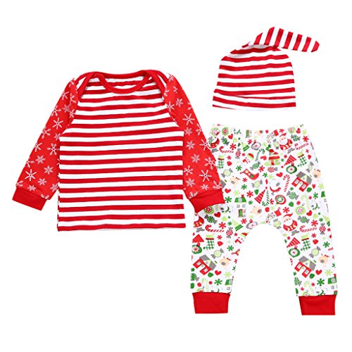 - 新生児の少年少女3ピースXMASの服装セット雪花トップ、サンタクロースパンツ、帽子。