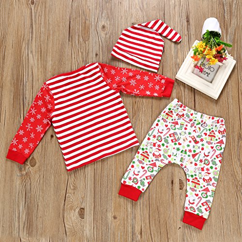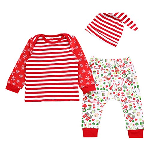 Perfk ユニセックス 赤ちゃん 雪花トップ サンタクロースパンツ 帽子 服装セット やわらかい クリスマスパーティー 全4サイズ - 赤, 18〜24ヶ月