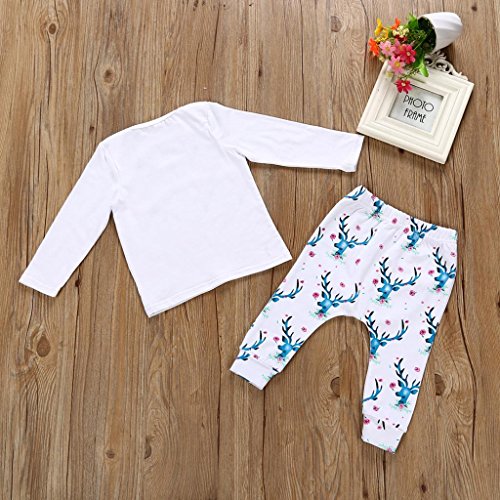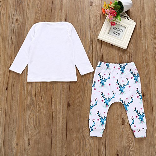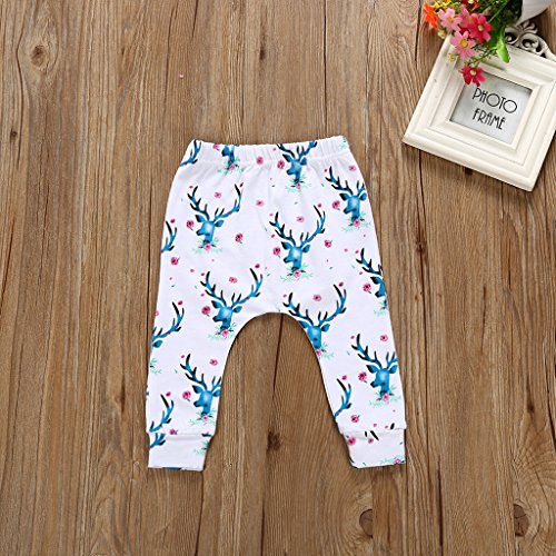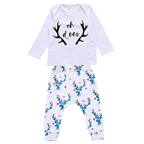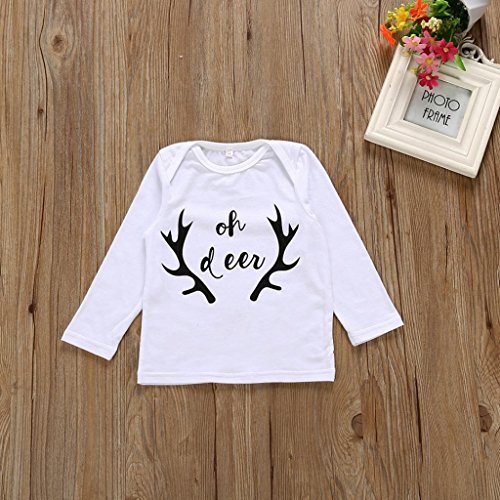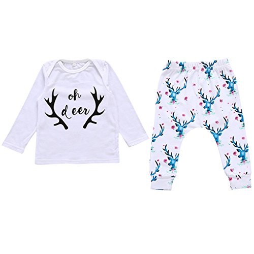 Perfk コットン 子供 赤ちゃん ユニセックス Tシャツトップス パンツ 服装セット 鹿プリント 柔らかい 写真撮影 全4サイズ - 鹿, 6-12ヶ月