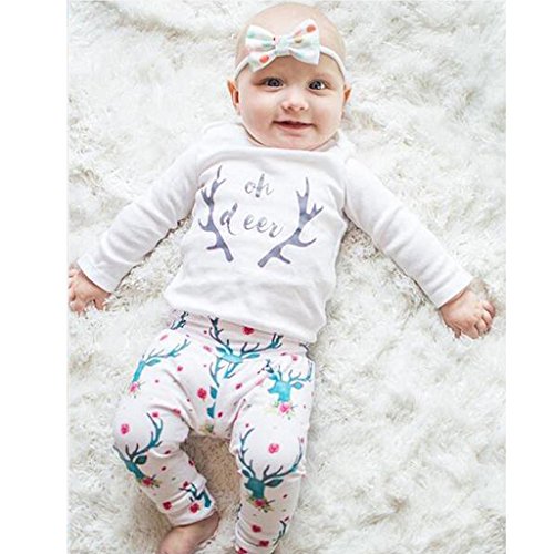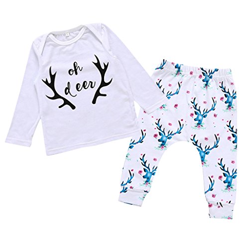 - 2枚/セット新生児の赤ちゃん男の子の女の子ロングスリーブディアートップズパンツの服装。