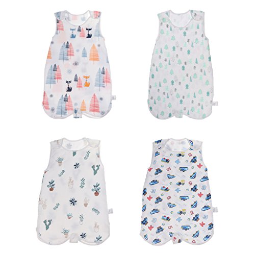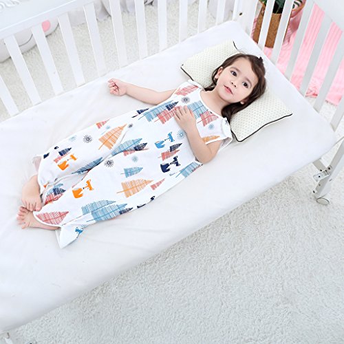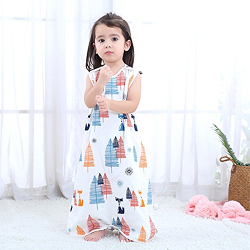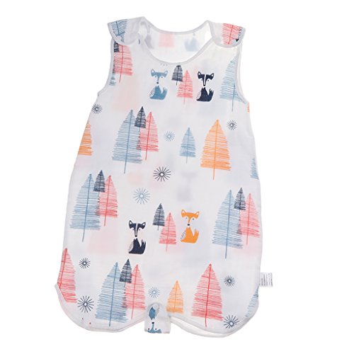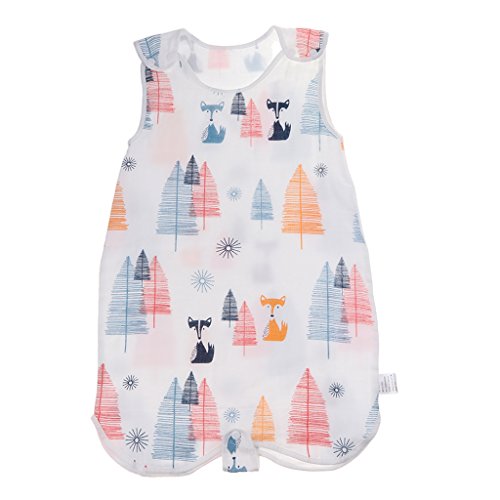 Perfk ベビー スリーパー 夏 赤ちゃん 綿 4層 ガーゼ ノースリーブ スリーピングバッグ 寝冷え防止 出産祝い ギフト 全3サイズ4種類 - フォックスフォレスト, M