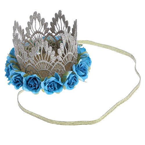 Perfk 美しい バラの花 素敵な ヘッドバンド 写真撮影 ヘアアクセサリー 全8色 - 青