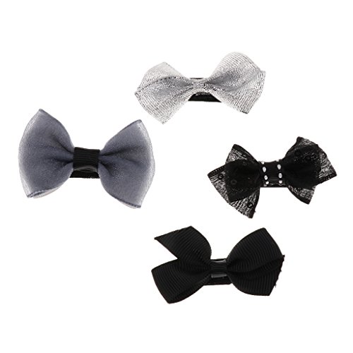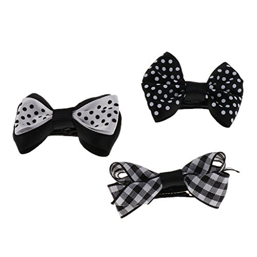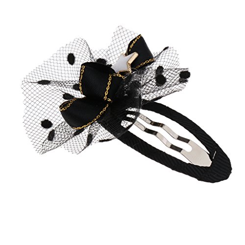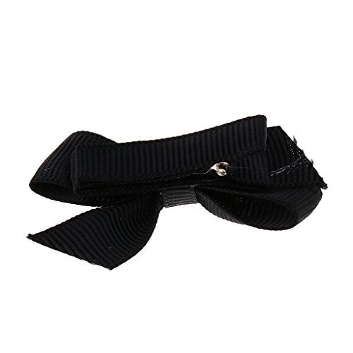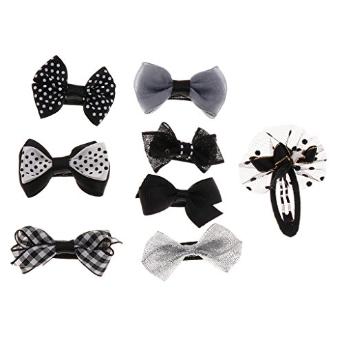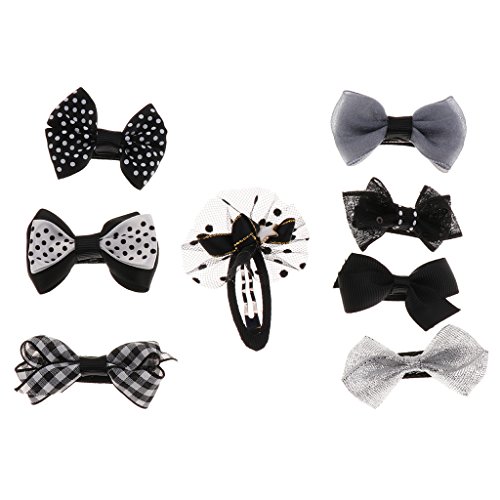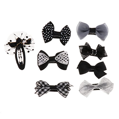 Perfk グログラン リボン 女の子 赤ちゃん ヘアクリップ ピン 髪飾り 髪留め ドット柄 ちょう結び 8個セット 全5色 - ブラック