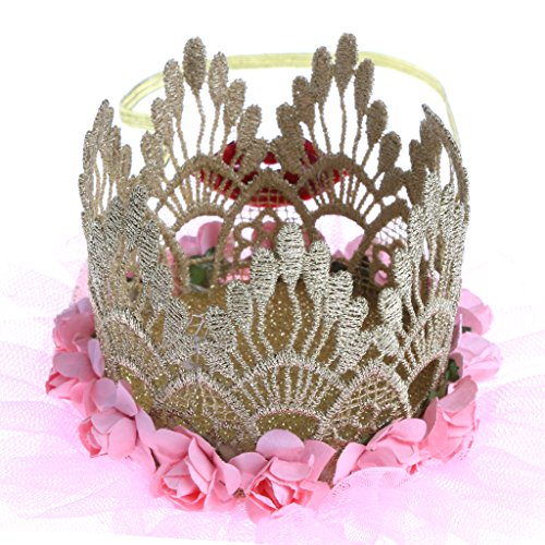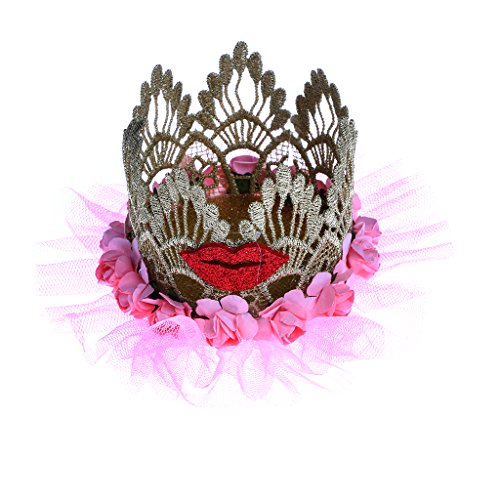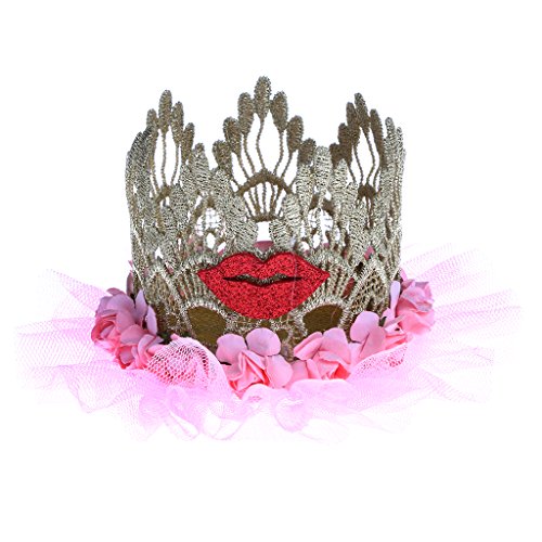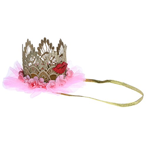 - キッドガールズプリンセスクラウンヘッドバンド、美しいバラの花と赤い唇の装飾