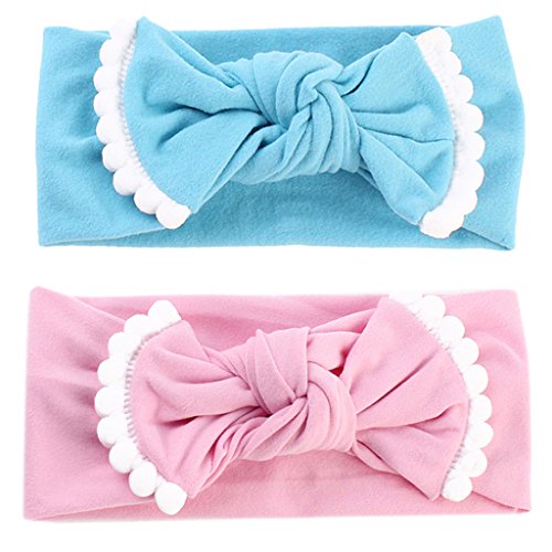 Perfk 2ピースセット ベビー ターバン 弾性 ボウの結び目 ヘッドバンド 子供 アクセサリー ギフト