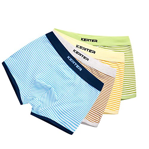 Perfk 2枚 4-11歳 キッズ 綿 下着 ボクサーブリーフ パンツ ショーツ ストライプ柄 快適 全5サイズ2色 - イエロー+ブラウン, 150cm