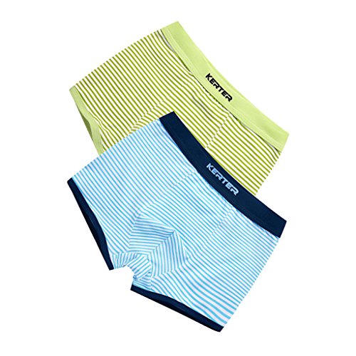 Perfk 2枚 4-11歳 キッズ 綿 下着 ボクサーブリーフ パンツ ショーツ ストライプ柄 快適 全5サイズ2色 - 青+緑, 130cm