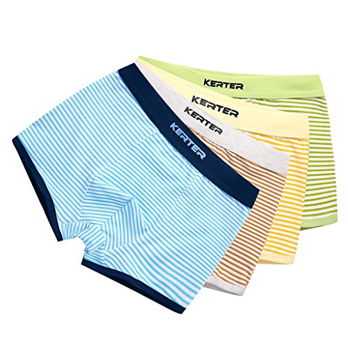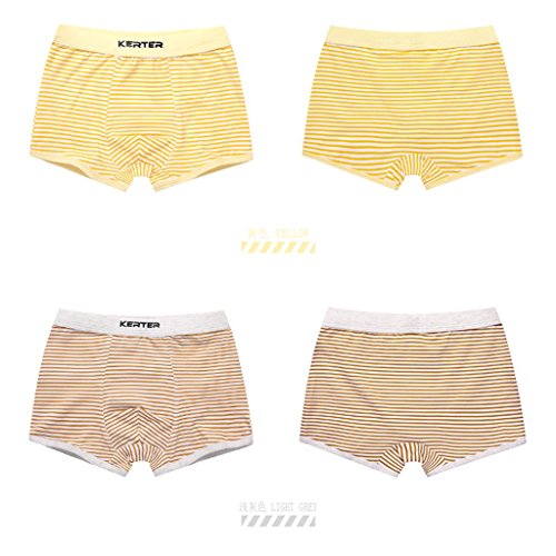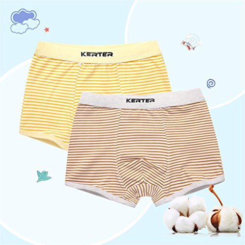 Perfk 2枚 4-11歳 キッズ 綿 下着 ボクサーブリーフ パンツ ショーツ ストライプ柄 快適 全5サイズ2色 - イエロー+ブラウン, 130cm