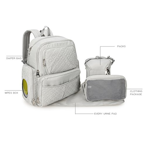 Perfk マザーバッグ 多機能 赤ちゃん おむつバック パック ナッピー セット ジッパーポケット 変更 全3色 - グレー