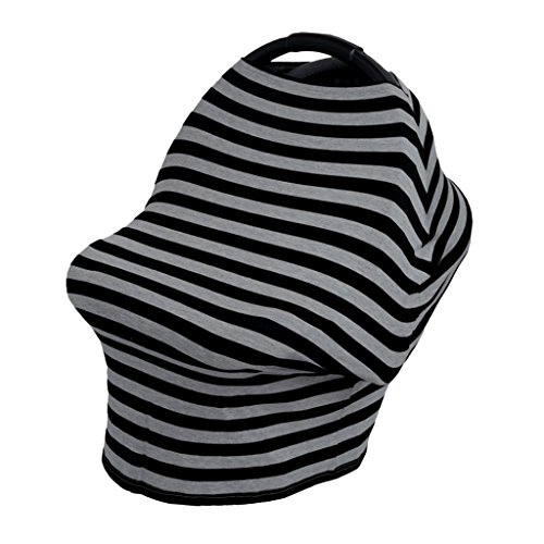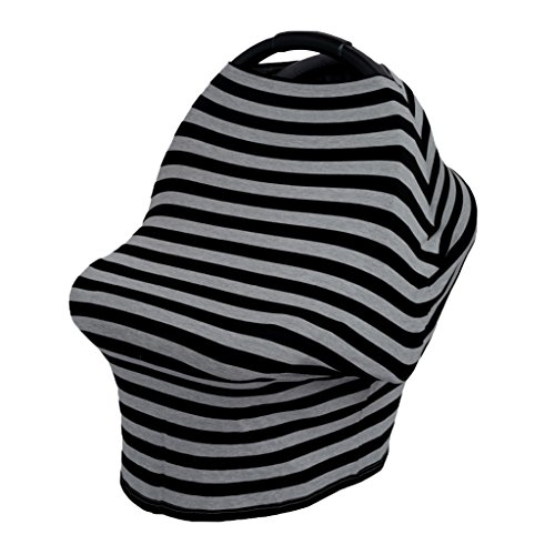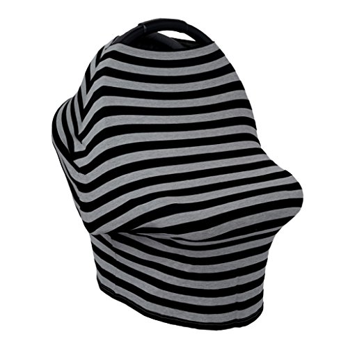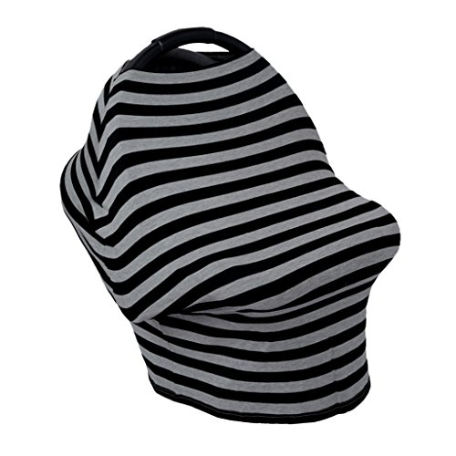 Perfk ベビーカーカバー 授乳ケープ 授乳カバー 遮光 防風 伸縮自在 出産祝い 全2色 - ストライプブラックアッシュ