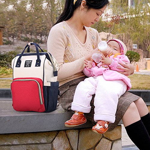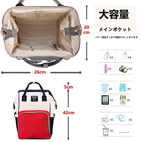 - ✤【大容量、収納力抜群】開口式大容量多機能のマザーズバッグ、収納力抜群で、哺乳瓶や粉ミルク、オムツ、衣類、財布、水筒、傘などがそれぞれスッキリ入れます。保温ポケット付き、PEVA防水袋付き、食品級の材質、赤ちゃんの交叉感染を拒否する。実用的なマザーズバッグです。サイズ:42cm×27cm×21cm