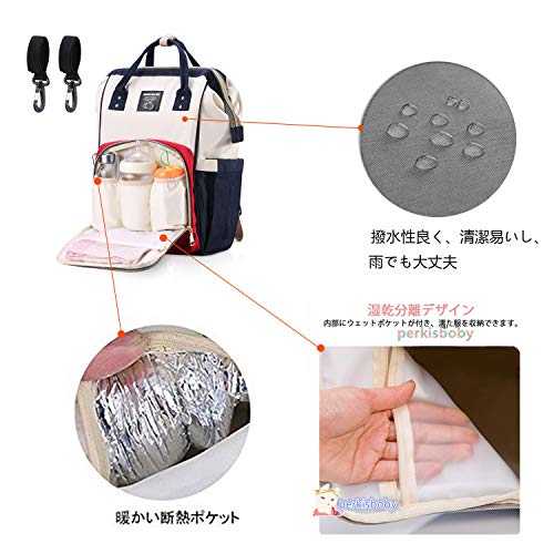 Perkisboby ママバッグ (レッド+ブルー+ベージュ)
