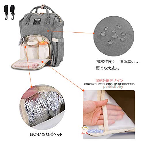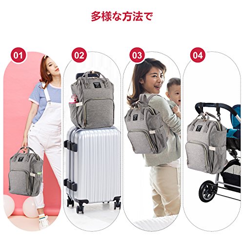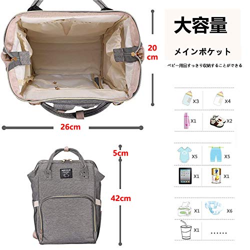 - ✤【大容量、収納力抜群】開口式大容量多機能のマザーズバッグ、収納力抜群で、哺乳瓶や粉ミルク、オムツ、衣類、財布、水筒、傘などがそれぞれスッキリ入れます。保温ポケット付き、PEVA防水袋付き、食品級の材質、赤ちゃんの交叉感染を拒否する。実用的なマザーズバッグです。サイズ:42cm×27cm×21cm