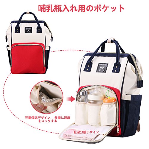 - ✤【大容量、収納力抜群】開口式大容量多機能のマザーズバッグ、収納力抜群で、複数のポケットがあります。保温ポケット付き、PEVA防水袋付き、食品級の材質、赤ちゃんの交叉感染を拒否する。実用的なマザーズバッグです。