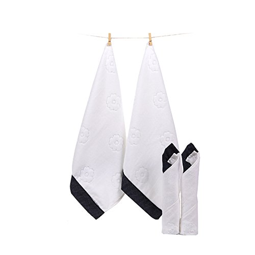 Petit Bella ジャガード ベロア触感 ベビー タオルセット 子供 厚手 柔らか 吸水 バスタオル フェースタオル ハンドタオル 100%コットン 34*34cm 4枚セット 出産祝い ギフト プレゼント