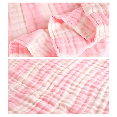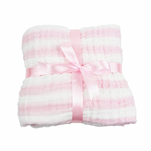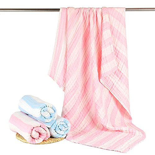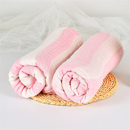 ボーダー柄 ベビーバスタオル タオル ガーゼケット おくるみ 入浴 6重ガーゼ 綿 110×110cm タオルケット 新生児・赤ちゃん・ベビー・子供用 柔らかい 保温 吸水 (1枚) 出産祝い プレゼント (ピンク)