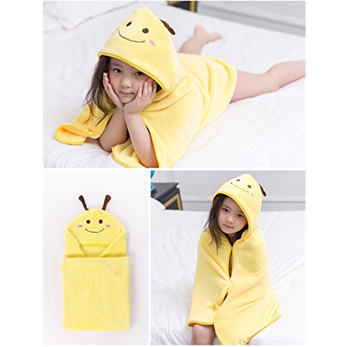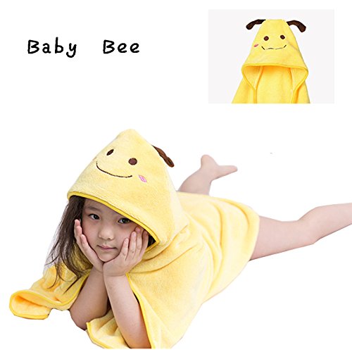 Petit Bella ふわふわ フード付 バスタオル バスローブ ポンチョ おくるみ ブランケット ベビー 子供 コーラフリース アニマル プール 風呂上がり 冷房 防寒 保温 出産祝い プレゼント (Baby Bee)