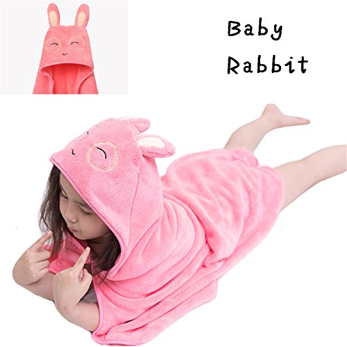 Petit Bella ふわふわ フード付 バスタオル バスローブ ポンチョ おくるみ ブランケット ベビー 子供 コーラフリース アニマル プール 風呂上がり 冷房 防寒 保温 出産祝い プレゼント (Baby Rabbit)