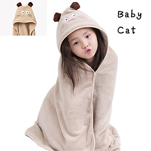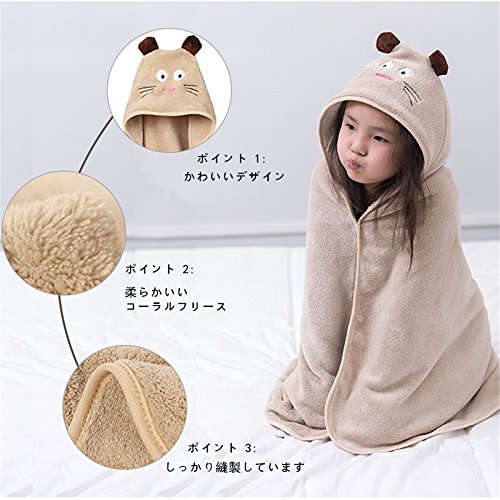 Petit Bella ふわふわ フード付 バスタオル バスローブ ポンチョ おくるみ ブランケット ベビー 子供 コーラフリース アニマル プール 風呂上がり 冷房 防寒 保温 出産祝い プレゼント (Baby Cat)