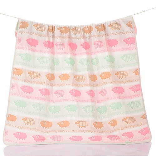 Petit Bella おくるみ ガーゼタオル 新生児 6重ガーゼケット ベビー 赤ちゃん オールシーズン 大判 100%コットン 通気 吸汗 保温 出産祝い 80×80cm 110×110cm 6 Colors (110×110cm, 多彩綿羊柄)
