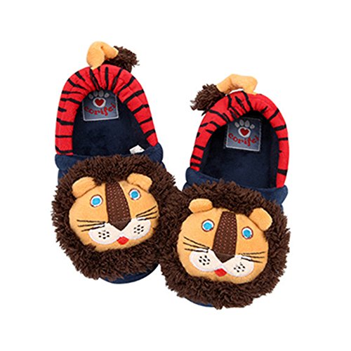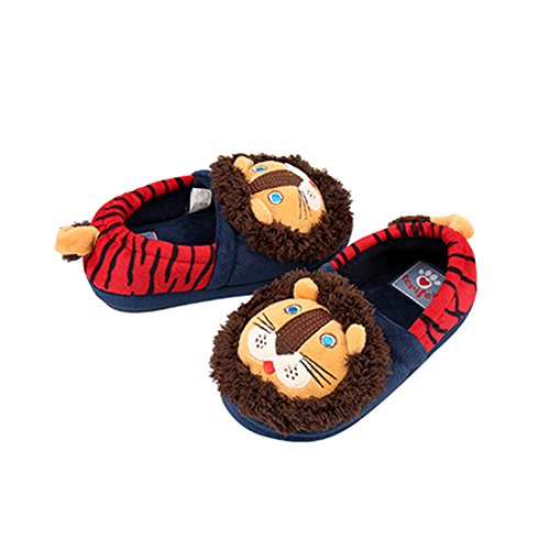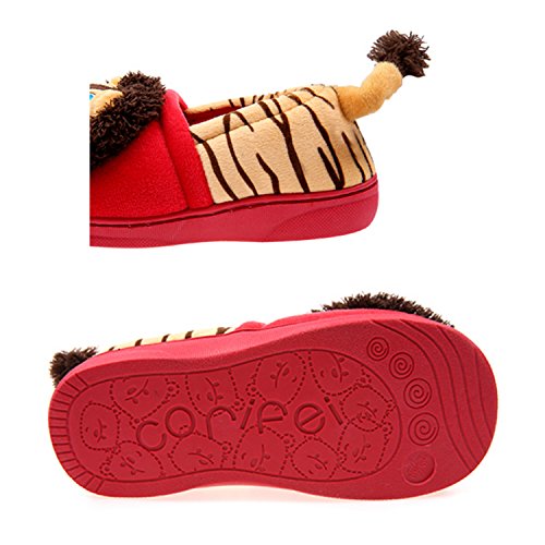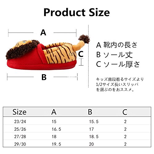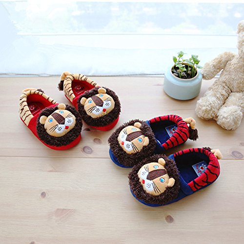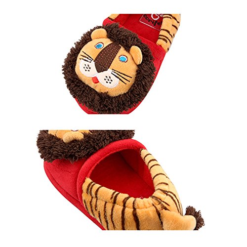 Petit Bella スリッパ 子供 キッズ用 可愛いライオン ルームシューズ 足首 あったか 防寒 滑り止め 室内 (靴内の長さ19.5, レッド)