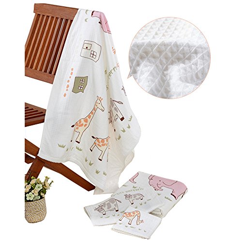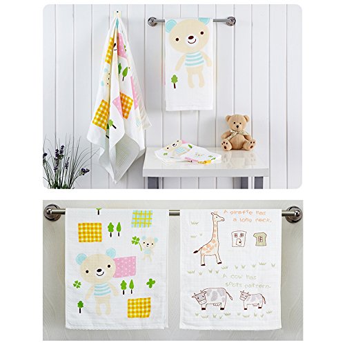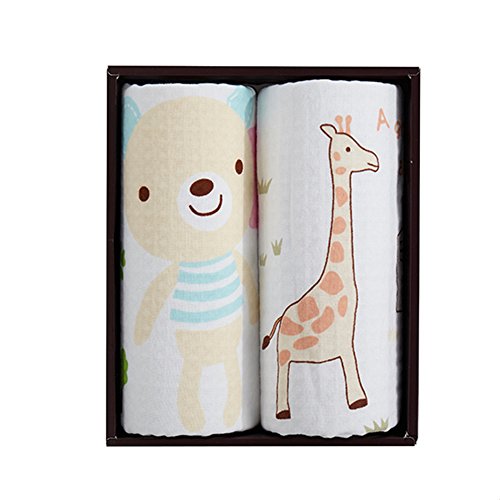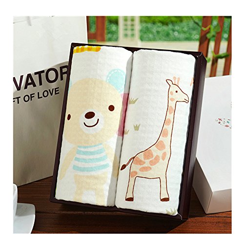 Petit Bella 動物柄 ベビー用 タオルセット フェイスタオル 2枚セット ガーゼ 子供 キッズ 100%コットン 出産祝い 誕生日 ギフトセット プレゼント (動物柄2枚セット)