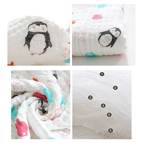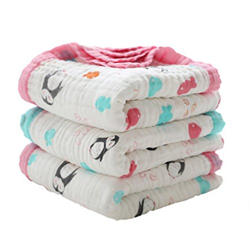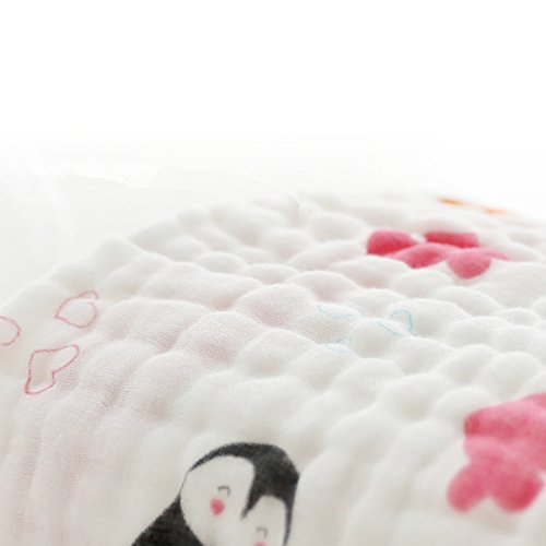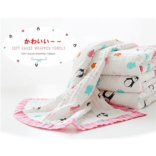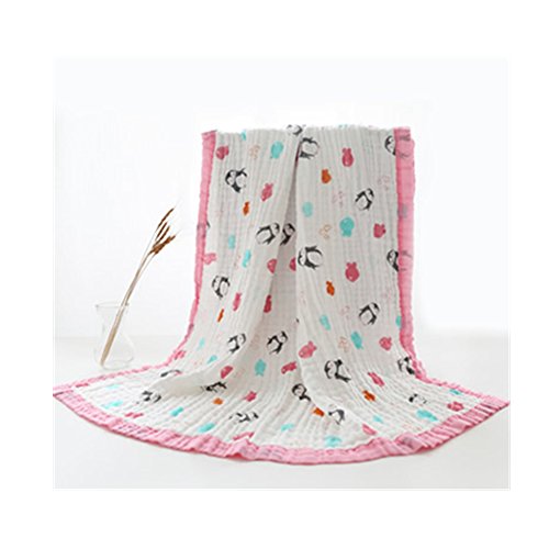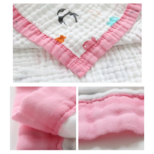 Petit Bella ふわふわペンギン柄 ベビー用バスタオル タオルケット ガーゼケット 6重ガーゼ 子供 キッズ 100%コットン 120×120cm (ピンク)