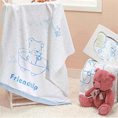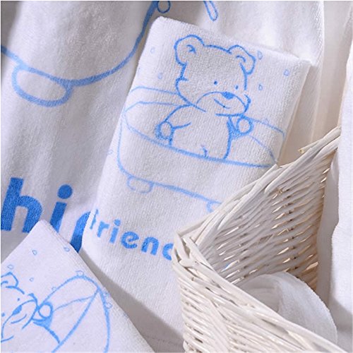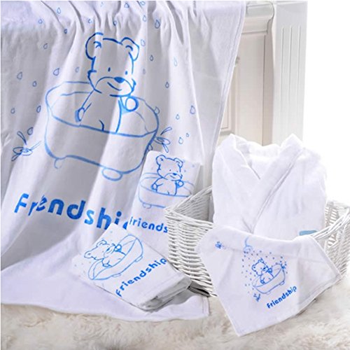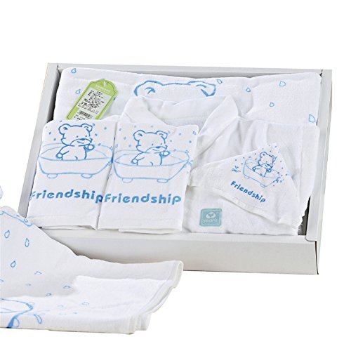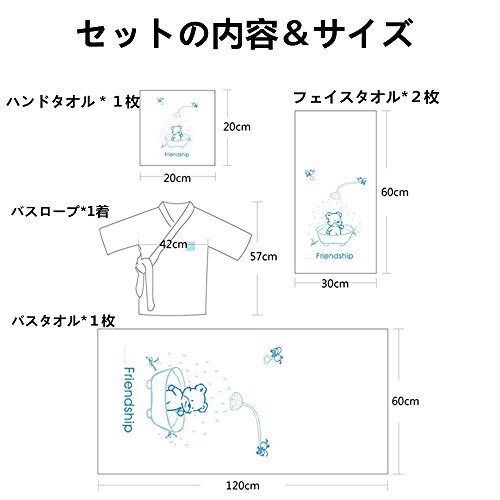 Petit Bella 豪華な入浴5点セット(バスロープ*1着&バスタオル*1枚&フェイスタオル*2枚&ハンドタオル*1枚)かわいいクマ柄 フード付き 100%コットン 0-3歳 ベビー 新生児 出産祝い プレゼント ギフトセット