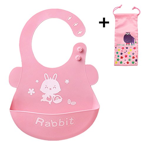 食事用スタイ エプロン ビブ 食品級シリコン ベビー 赤ちゃん キッズ ポケット付き 防水 漏れ防止 水洗い可 折り畳み 3段階に調整できる 収納袋付き (ピンク)