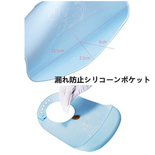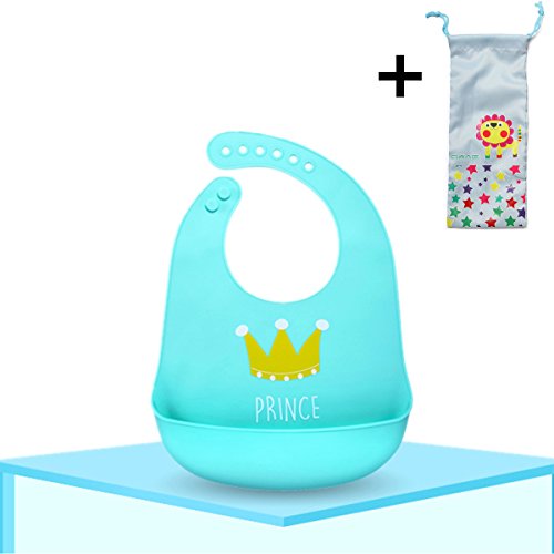 食事用スタイ エプロン ビブ 食品級シリコン ベビー 赤ちゃん キッズ ポケット付き 防水 漏れ防止 水洗い可 折り畳み 6段階に調整できる 収納袋付き (Prince)